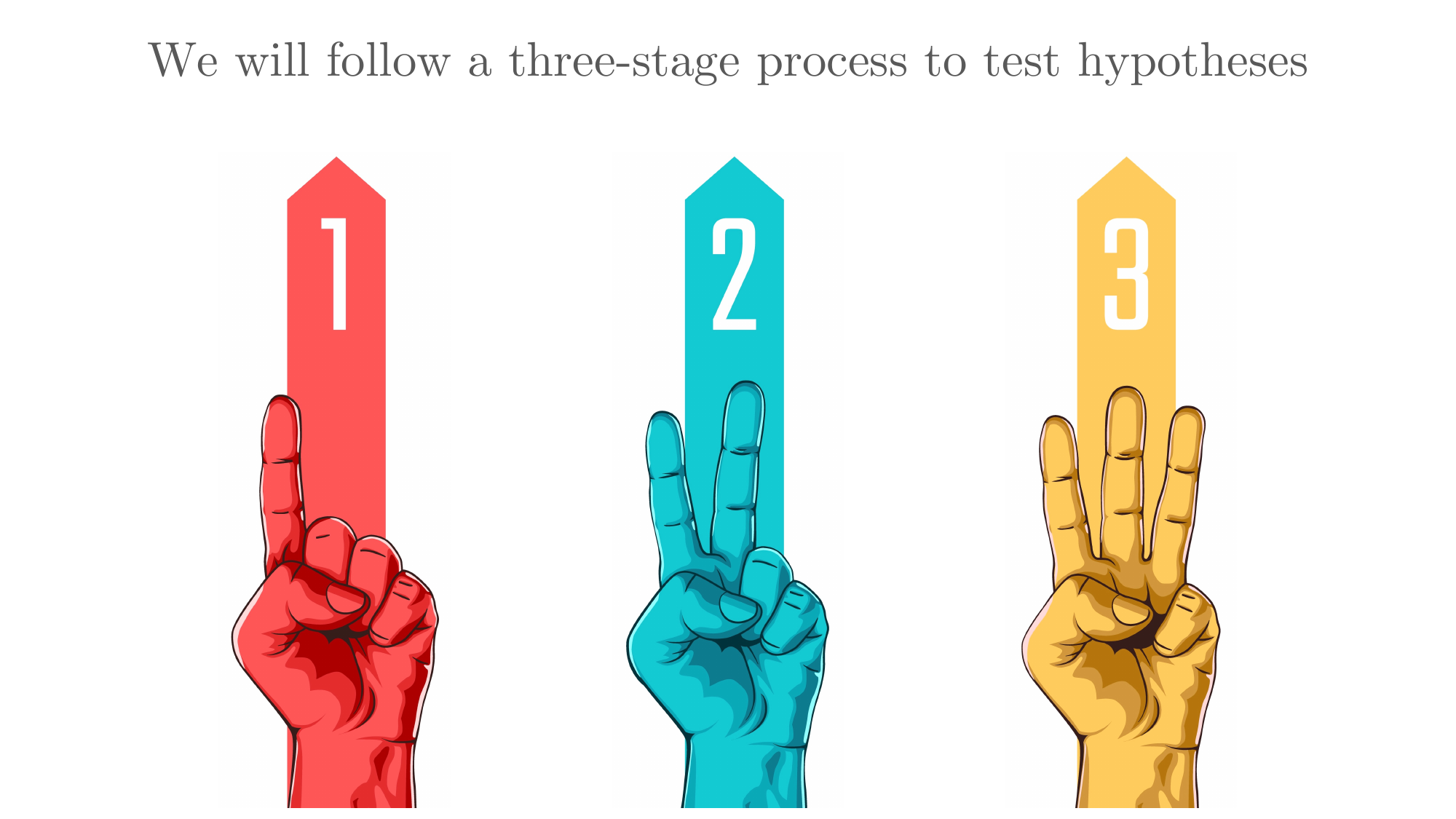 Now that we understand standard error, we can proceed with our hypothesis test. We’ll work through this systematically in three stages.