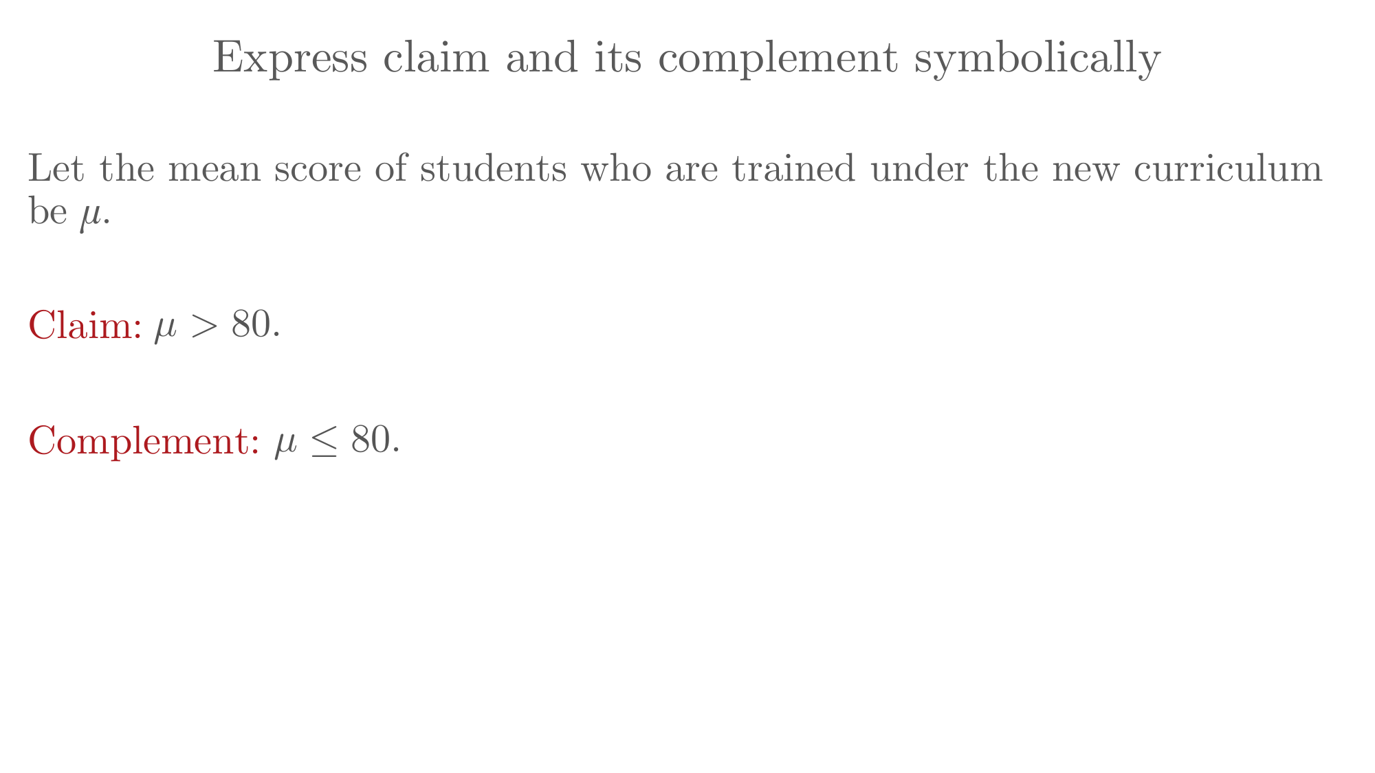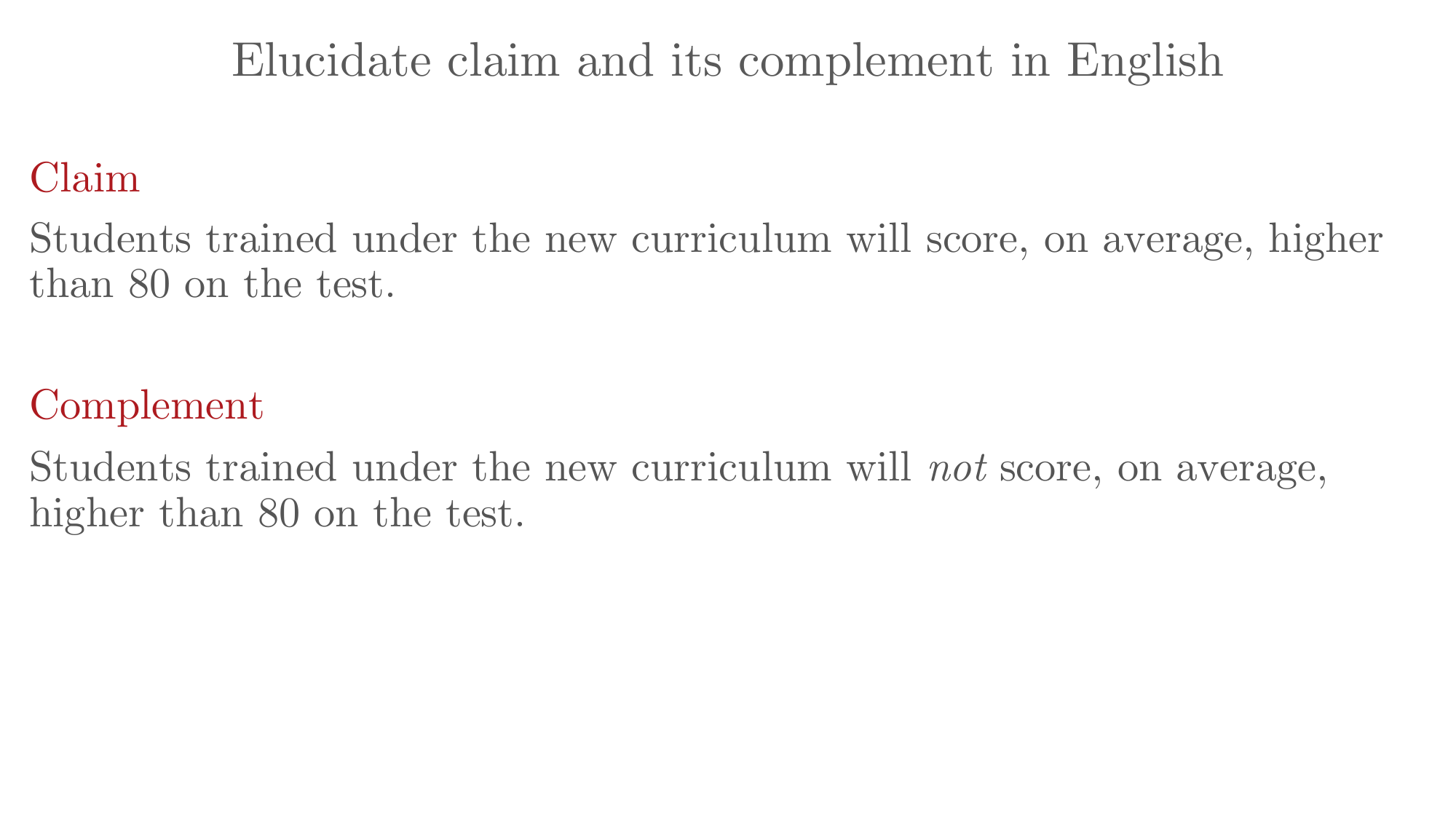 Complement: Students trained under the new curriculum will not score, on average, higher than 80 on the test.