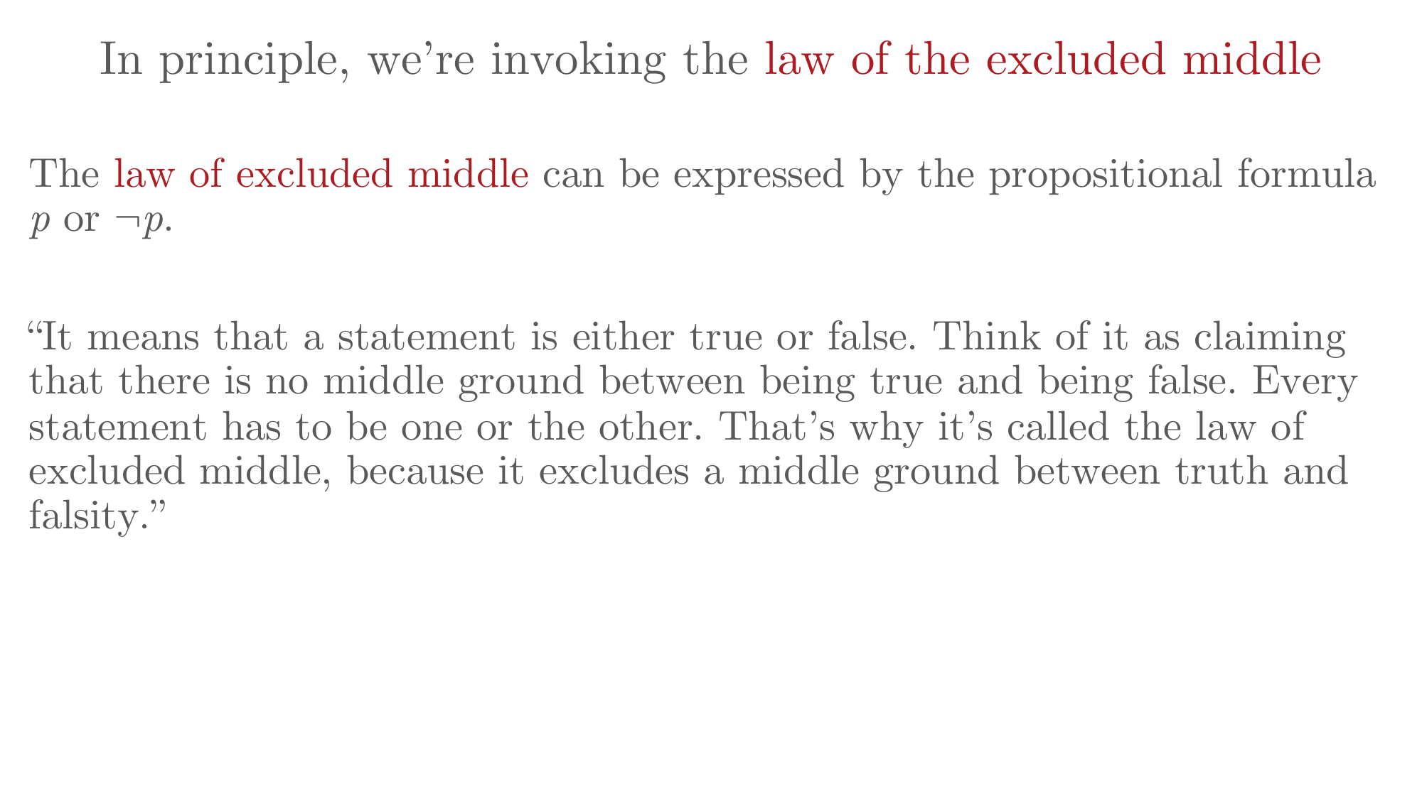 In formulating our hypotheses, we’re invoking a fundamental principle of logic: the law of the excluded middle.